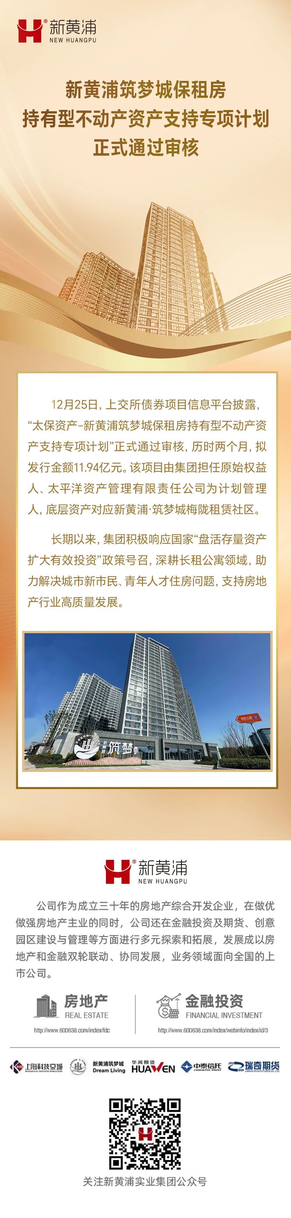 新黄浦筑梦城保租房持有型不动产资产支持专项计划正式通过审核