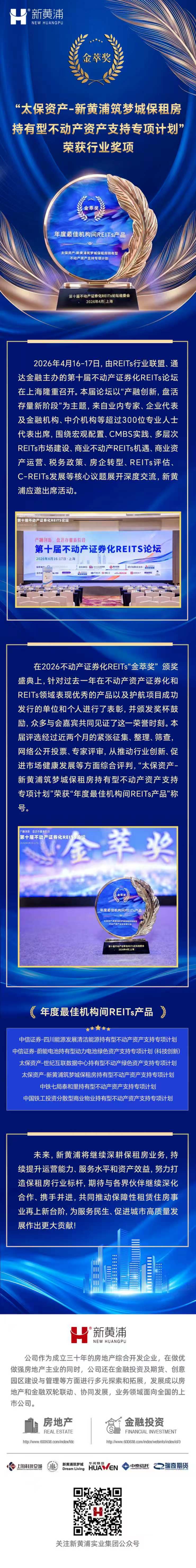 “太保资产-新黄浦筑梦城保租房持有型不动产资产支持专项计划”荣获行业奖项